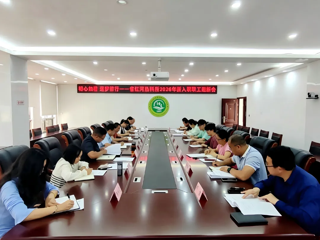 为帮助新入职同志快速融入集体、熟悉工作环境,明确发展方向,凝聚奋进力量,2026年4月13日,省红河热科所召开了2026年新入职职工迎新会,党委副书记、纪委书记、副所长王树明主持会议。会议伊始,党委副书记王树明代表所党委对两名新入职同志表示热烈欢迎,他指出,新同志是单位注入的新鲜血液,是推动单位高质量发展的新生力量,希望他们以此次迎新会为起点,尽快转变角色、找准定位,在新的岗位上脚踏实地、奋勇争先。在自我介绍环节,新同志结合自身专业背景、过往经历及入职感受,畅谈对未来工作的期待与规划,展现出朝气蓬勃、积极向上的精神风貌,也表达了立足岗位、服务单位发展的坚定决心。