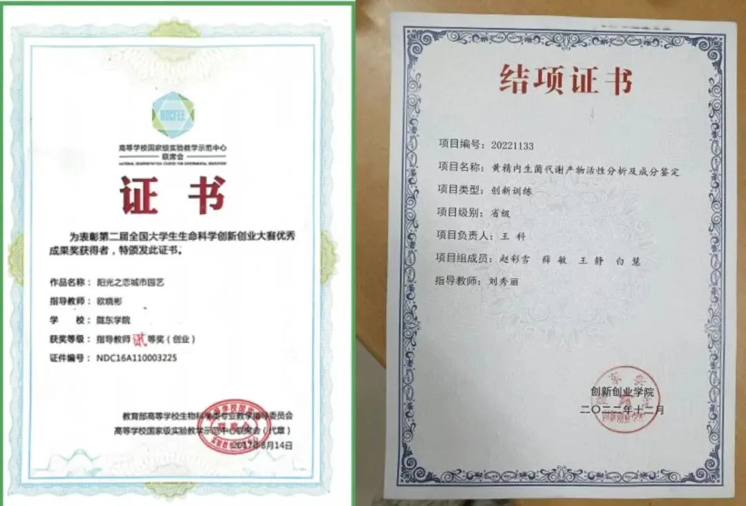 • 大学生创新创业训练计划(大创),每年获批省级、校级项目十余项,覆盖食品研发、生物检测、作物育种、园艺栽培等方向。
