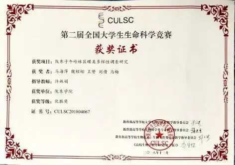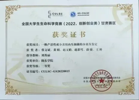 • 全国大学生生命科学竞赛(甘肃赛区)