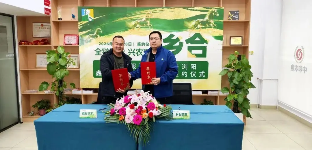 近日,湖南乡合农服与浏阳市鑫杉农机专业合作社正式签署战略合作协议。