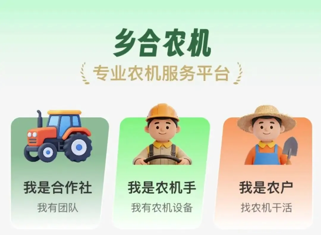 乡合农机平台构建了订单流、资金流、作业流“三流合一”的完整服务闭环。从农户下单到在线结算全流程数字化,七大环节环环相扣:农户在线下单→平台智能派单→合作社接单并指派机手→农机手现场签到打卡→作业过程实时监测→农户验收→在线结算。数据实时同步,服务全程可溯。