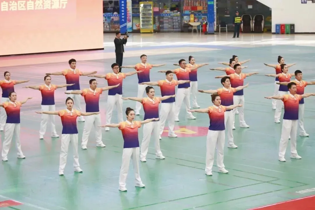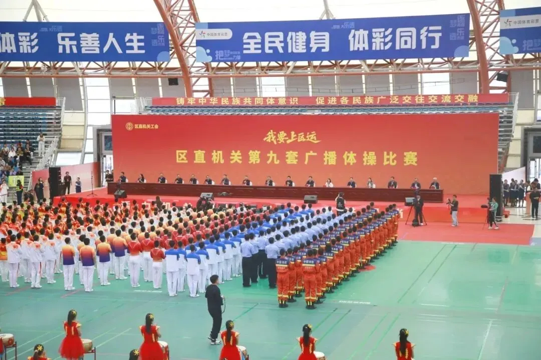 为深入推进机关全民健身活动,引导广大干部职工积极参与体育锻炼、强健体魄,4月11日至12日,由区直机关工委联合自治区体育局、总工会举办的“我要上区运”区直机关第九套广播体操比赛暨机关全民健身倡议活动在宁夏亲水体育中心举行。区直机关及中央驻宁单位共57支代表队、1855名队员,分为A、B组同台竞技、一展风采。