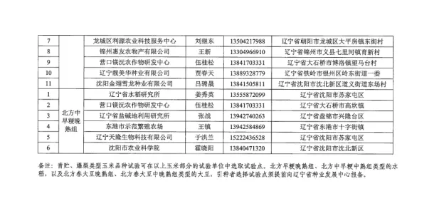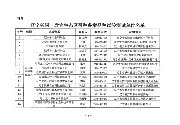 附件:《辽宁省同一适宜生态区引种备案品种试验测试单位名单》