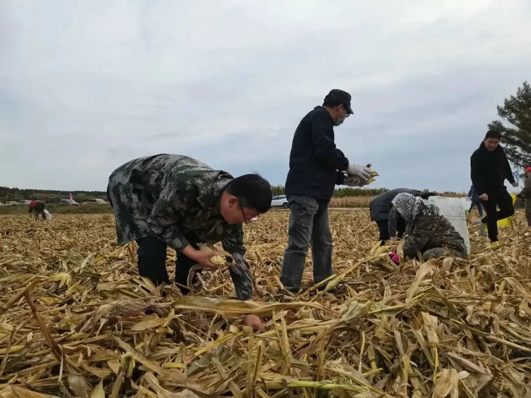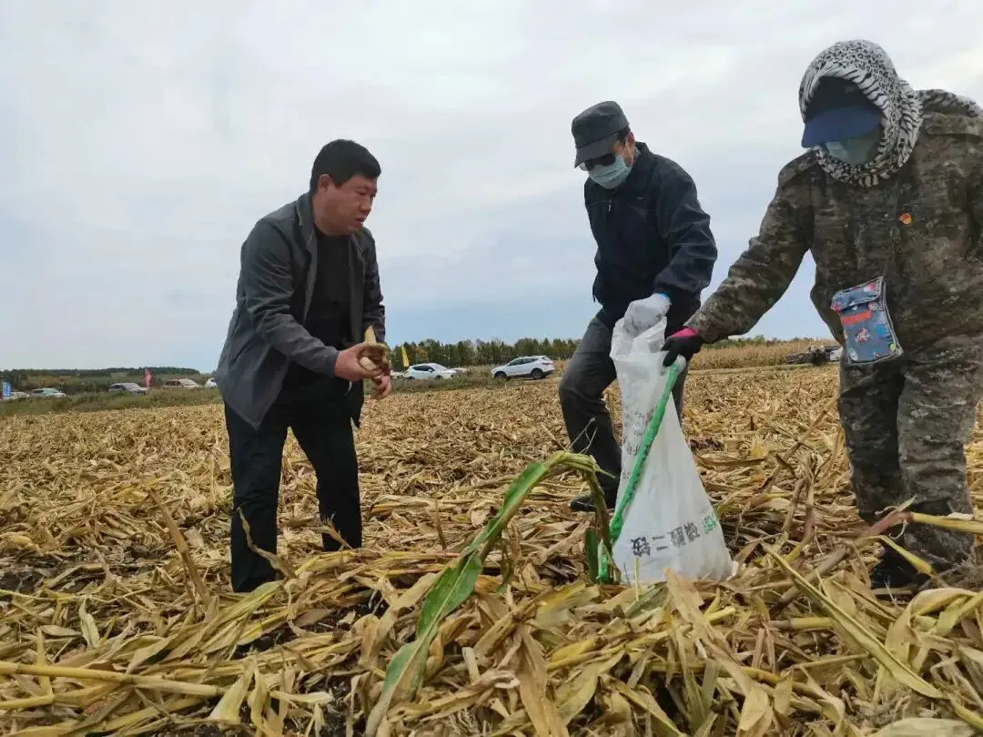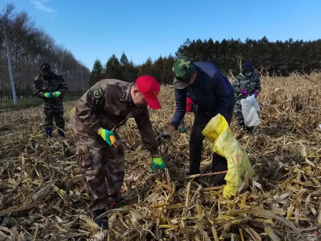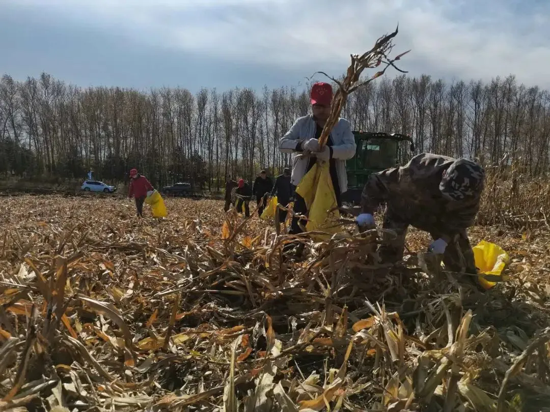 在第二管理区玉米收获地号,记者看到农场有限公司党政领导带队在前,充分发挥北大荒精神,不怕苦、不怕累,对收获过后的玉米秸秆、玉米叶仔细翻找,捡拾玉米,先锋队队员也紧跟收获机后开展人工二次收获工作,一幅人机合力、护秋保收的奋斗画面徐徐展开,这也是农场有限公司抢收保粮的一个缩影。
