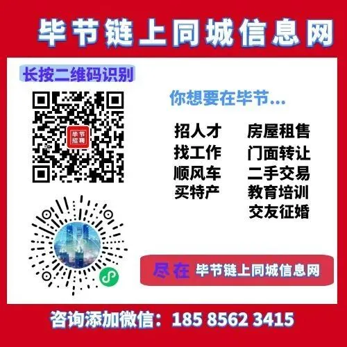 注:联系时请说是在“毕节链上同城招聘网”看到的信息,若信息与实际不符,请向小编反馈:185