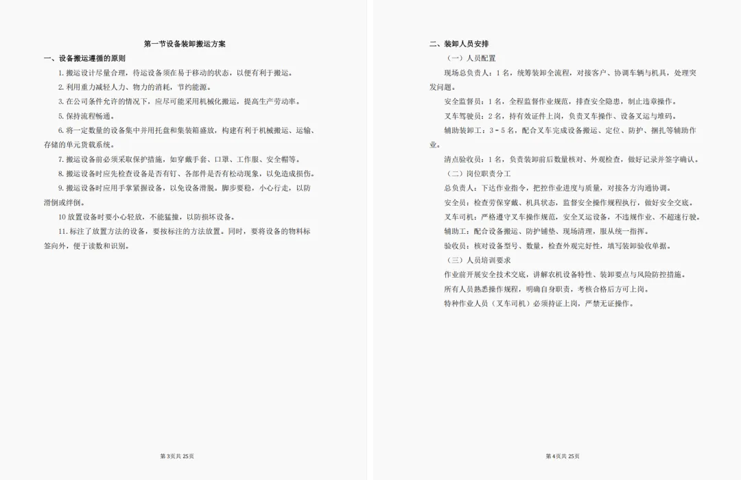 一、设备装卸搬运方案;