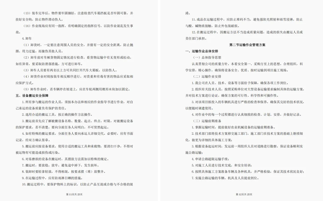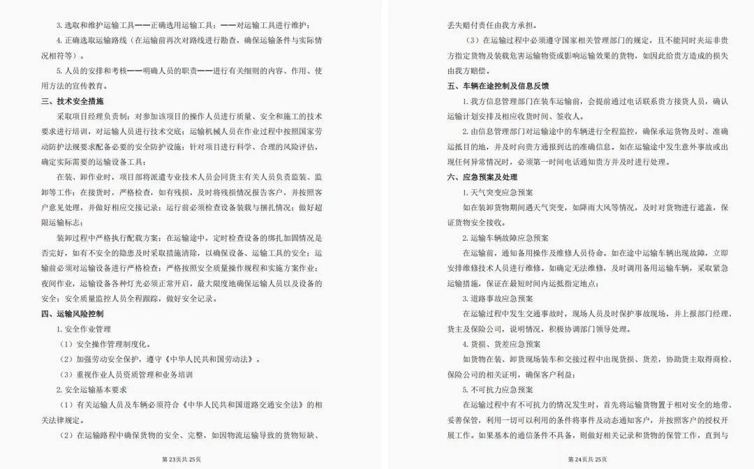 四、文明运输方案;