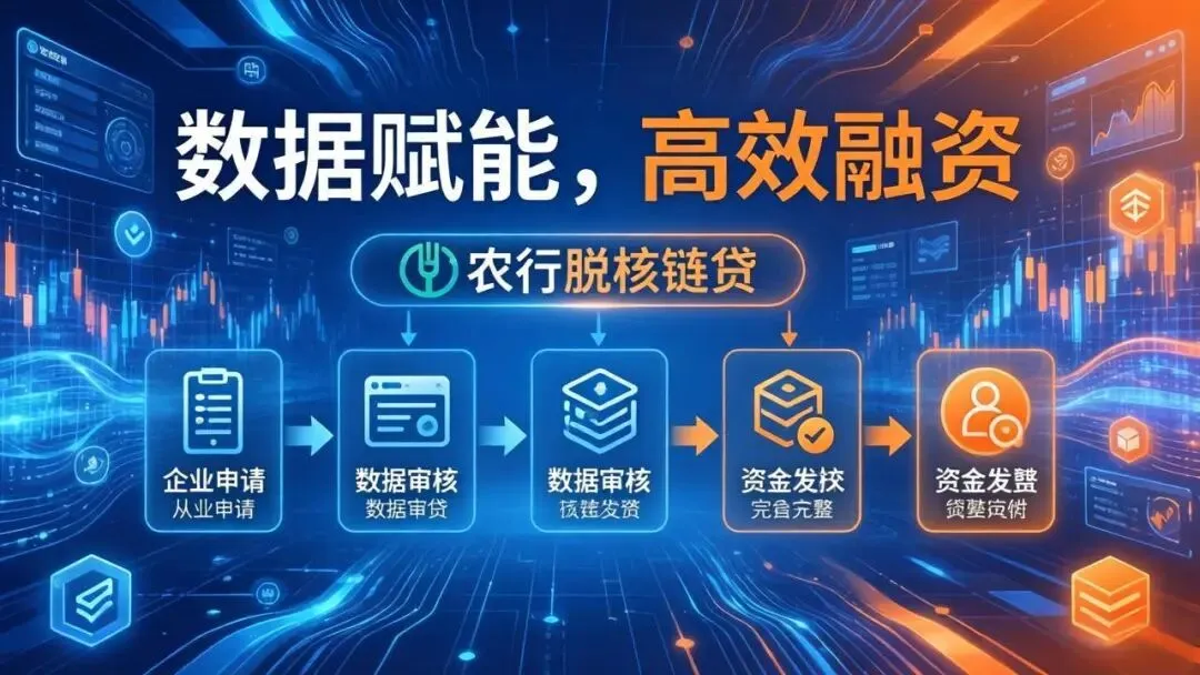 在供应链金融数字化转型的浪潮中,“脱核”模式正成为破解中小微企业融资困境的关键突破口。中国农业银行顺势推出“脱核链贷”,打破传统供应链金融对核心企业信用的过度依赖,依托大数据、区块链等金融科技手段,以交易数据为核心构建信用评估体系,为供应链上下游企业提供高效、便捷、低成本的融资支持,助力实体经济高质量发展。作为农行普惠金融战略的重要实践,脱核链贷精准贴合中小微企业、三农主体的经营需求,用灵活的产品设计和宽松的准入条件,为链上企业注入金融活水。不同于传统供应链融资对核心企业授信的高度依赖,农行脱核链贷遵循“脱核不离核,确真不确权”的核心逻辑,将信用评估的重点从核心企业主体信用,转向链上企业自身的交易记录、履约能力等多维度数据,实现了从“依赖核心”到“信任数据”的转型升级[6][7]。这种创新模式不仅有效分散了融资风险,更让大量无法依托核心企业信用融资的中小微企业、三农主体获得了金融支持,真正实现了“数据增信、信用变现”[3]。无论是大型优质国央企、上市公司的上下游合作伙伴,还是扎根农业产业链的农户、合作社,或是与核心企业有稳定合作的小微企业、个体工商户,都能借助这款产品解决资金周转难题。在产品核心优势上,农行脱核链贷以“普惠、灵活、高效”为核心,全方位贴合企业经营特点。针对企业最关心的额度与利率,该产品给出了极具竞争力的方案:额度最高可达1000万元,能够充分覆盖中小微企业采购备货、产能扩张、资金周转等各类需求;年化利率低至3%起,大幅降低企业融资成本,相较于传统融资产品,有效减轻了企业的财务负担。在期限与还款方式上,产品兼顾灵活性与实用性,最长可贷12期,还款方式采用先息后本、随借随还,企业可根据自身资金流情况灵活调配资金,避免资金闲置,提高资金使用效率。为了让更多符合条件的企业享受到金融支持,农行脱核链贷设置了宽松且贴合实际的准入条件。贷款主体需为深圳注册企业,成立满一年,与核心企业合作超过半年,年交易额不低于50万且交易连续性良好,这一要求充分考虑了中小微企业的经营现状,避免了过高门槛将优质小微企业拒之门外。- 核心企业供应链客户,包括大型优质国央企、上市公司的上游供应商和下游经销商