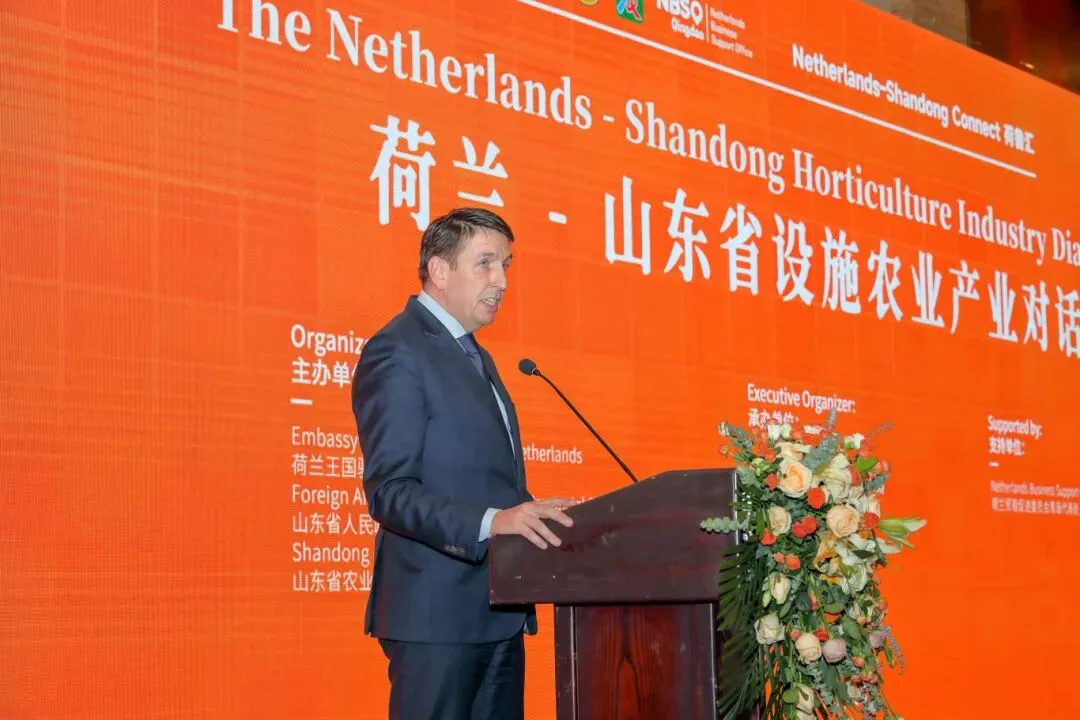 活动上,省农业农村厅主要负责人介绍了山东省设施农业的发展基础、政策支持体系与全球化合作布局,荷兰设施农业联盟协调员赫特·德饶系统推介了荷兰在智慧温室、环境控制、生物防控、育种研发等领域的全产业链优势与合作模式。