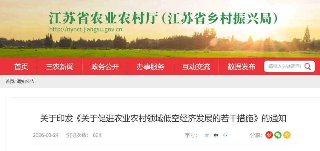 江苏省:目标到2030年,农用无人机稳定在4万台以上,作业覆盖率50%以上。围绕六大方向出台18条举措,建设3个以上试验场,拓展农业生产与乡村治理场景,培育百家综合服务企业、五千家专业服务组织,探索按飞行数据精准补贴。