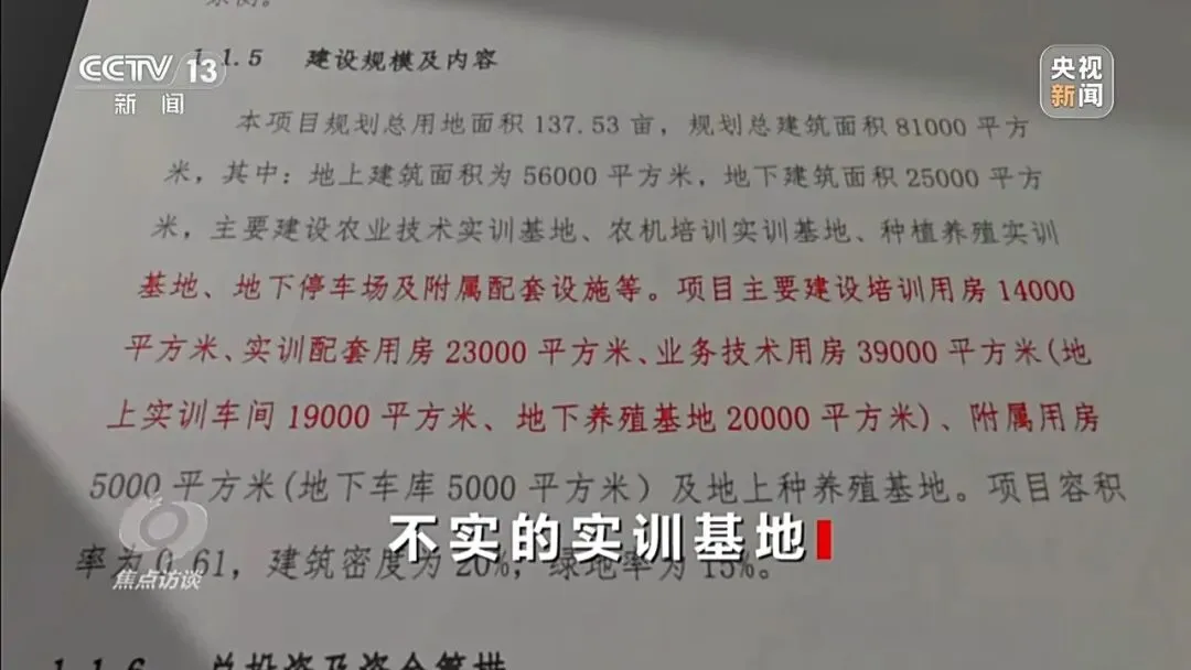 一个投资7个多亿的“农业实训基地”,却在建成之后没有实际用于农业实训,这又是为何呢?记者查阅项目备案文件,上面明确写着建设内容应为:农业技术、农机培训、种植养殖三大实训基地及相关配套。然而,在规划之初,这些实训基地及相关配套设施都换了名字,与备案文件上的截然不同。