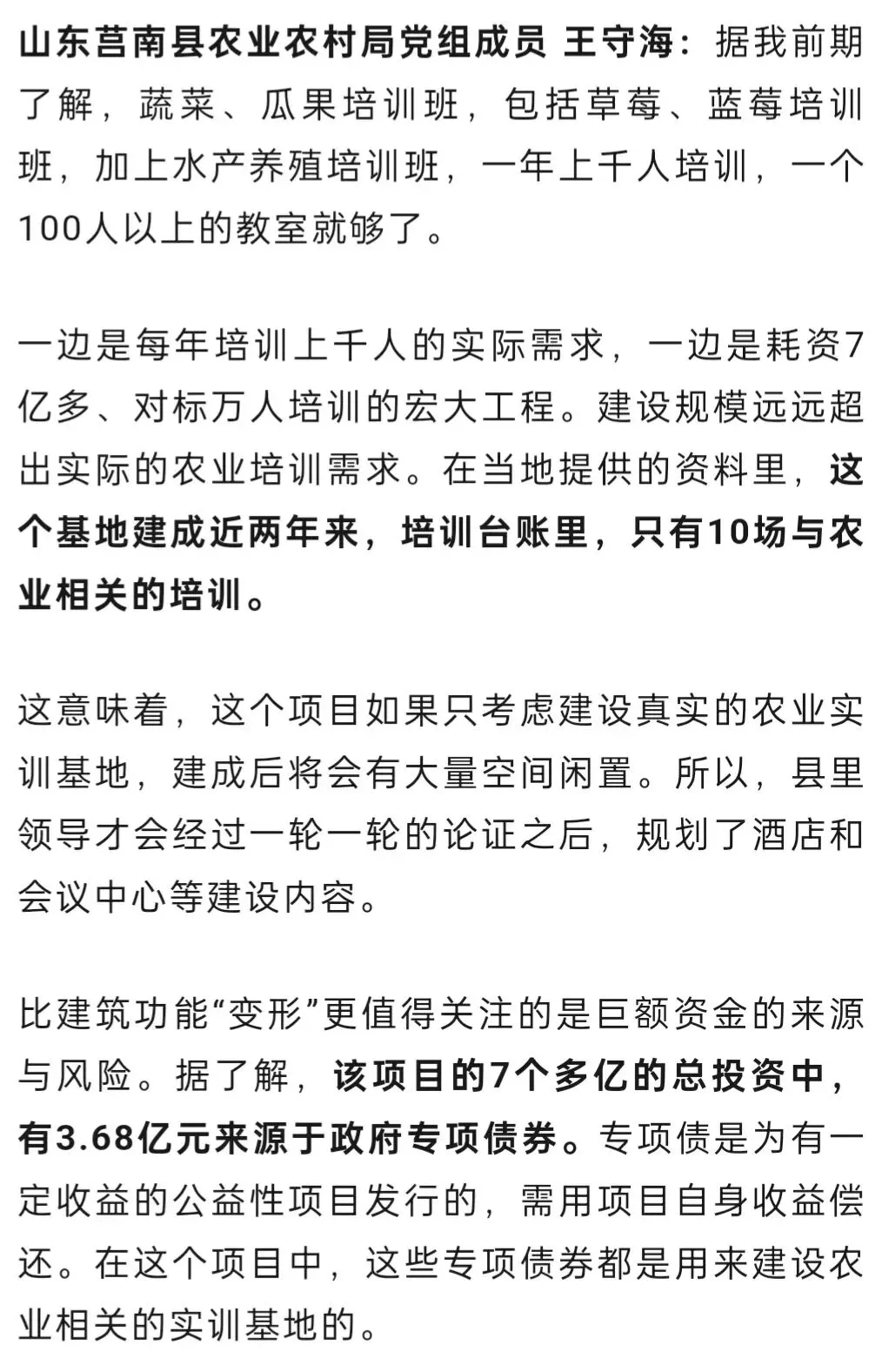 不难看出,这样的规划和设计,其实是县里有意为之。名为农业实训基地的项目,规划的年培训能力高达17000人次,而莒南县近两年实际的农业相关培训需求又有多少?