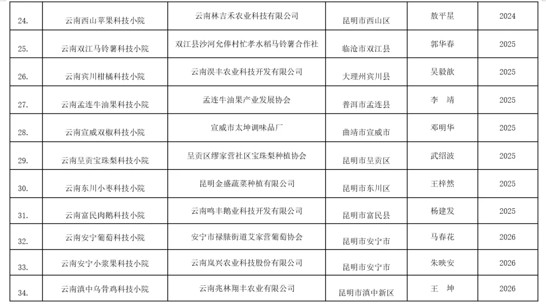 附件1 2020-2025年云南省中国农技协科技小院批准建设名单(36家).pdf