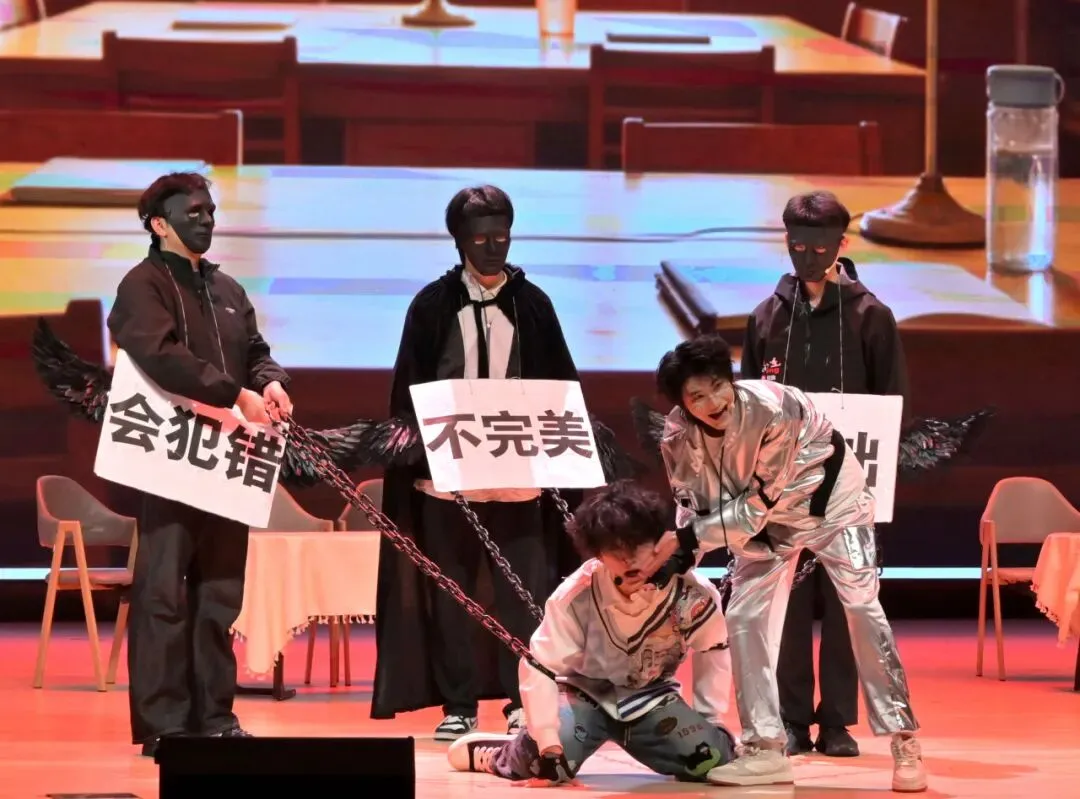 演员们以饱满的情绪、灵动自然的表演,将讨好型人格的不安、依赖算法的迷茫、觉醒之后的释然演绎得淋漓尽致,引发全场观众强烈共鸣。“我最想让观众记住的,是剧里‘真心永远比算法更有力量’的情节。这个作品想向大家传递的深层内涵是:情感是复杂而奇妙的,算法永远不能真正量化人心。”谈及本次情景剧,主角“小己”的扮演者张腾冲分享道。他希望借本次表演,让每一个讨好型人格的“小己”都能明白:不用刻意迎合所有人,做真实的自己,也会被真正地看见和热爱。