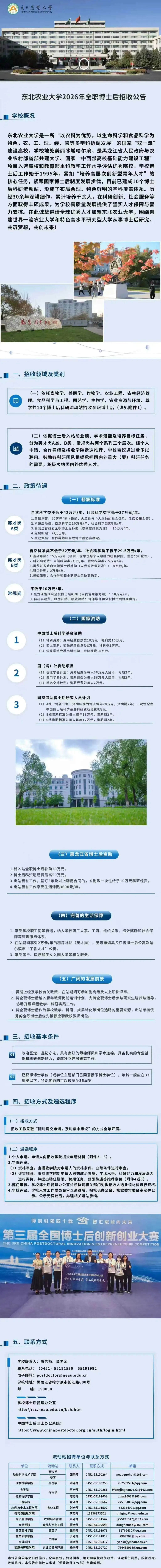 >(招聘)薪酬最高达42万!东北农业大学2026年全职博士后招收公告