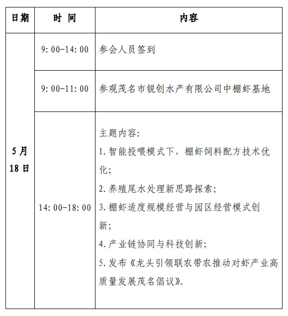 近年来,我国对虾产业面临市场价格波动、病害高发频发、终端消费乏力、养殖尾水处理成本上升等多重挑战,传统养殖户在环保要求与市场风险面前的抗风险能力薄弱。与此同时,以棚虾为代表的适度规模经营模式,凭借标准化、集约化、可控性强的优势,并逐步融入生态循环理念与绿色养殖技术,在广东、广西、江苏等地快速发展,正成为推动对虾产业转型升级的重要力量。为汇聚行业智慧与力量,凝聚“龙头引领、联农带农”的高质量发展共识,探索“龙头+农户”的适度规模经营新模式新路径,推广生态友好、尾水可控、资源节约的绿色养殖模式,我会定于5月18日在广东省茂名市召开“2026中国渔业协会棚虾产业大会”。现将有关事项通知如下: