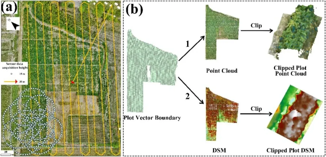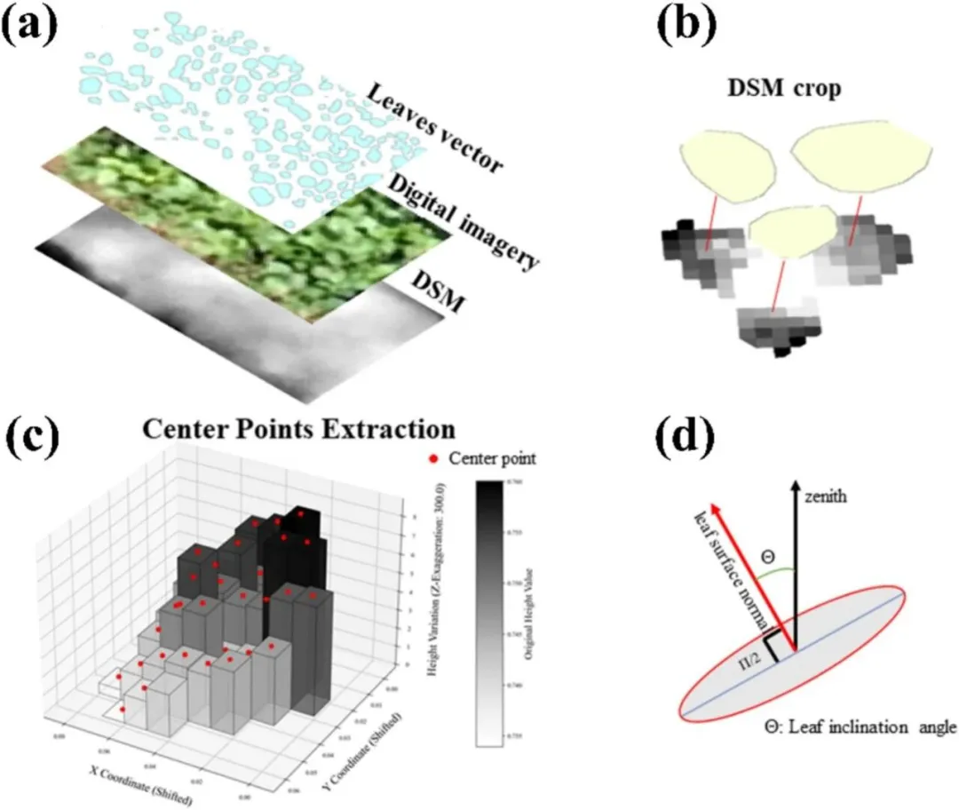 叶片倾角分布(leaf inclination angle, LIA)是影响冠层光能利用效率和辐射传输的重要结构性状。现有的LIA测量方法虽然精度较高,但难以在大尺度条件下实施,已成为农业与生态研究中的“表型瓶颈”。针对这一问题,本研究提出了一种基于无人机(UAV)摄影测量的田间尺度平均叶倾角(mean leaf angle, MLA)提取框架。