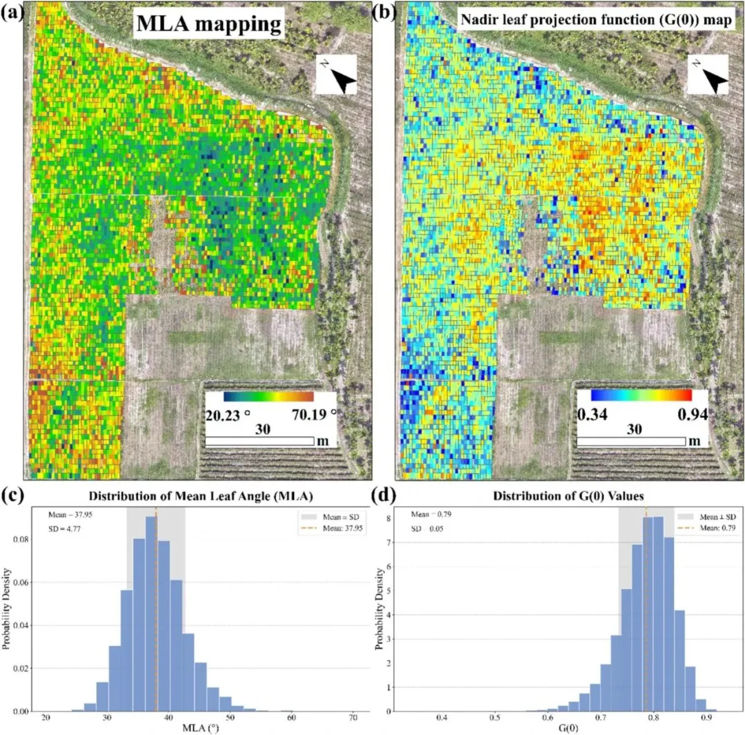 研究结果表明,该框架能够高效生成具有高空间分辨率的田间尺度平均叶倾角分布图。通过在大规模群体中提供定量的冠层结构参数,该方法为生态学与农业研究提供了一种具有良好扩展性的技术手段。