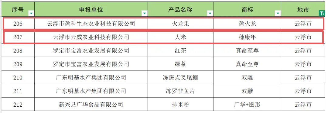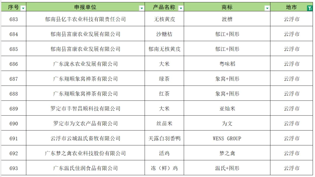 云浮新增入库产品品牌名单(7个)