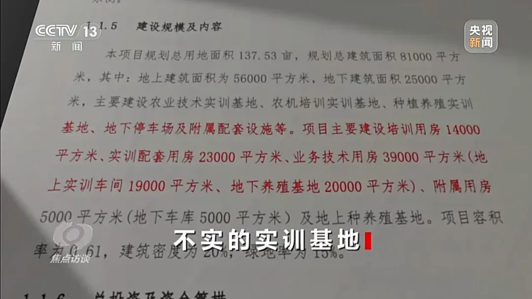 4月14日,中央广播电视总台《焦点访谈》栏目报道山东临沂莒南县农业实训基地相关问题,一个投资7个多亿的“农业实训基地”却在建成之后没有实际用于农业实训。