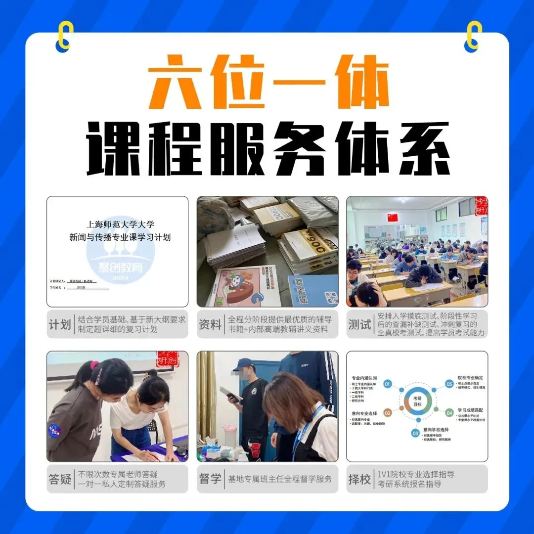 江西聚创考研二战集训营采用六位一体的服务体系,辅导内容非常详细,是包含但不限于:择校择专业、学习计划安排、考研信息收集、学习效果检验、答疑、复试、调剂准备等全程全方位个性化的高端辅导。