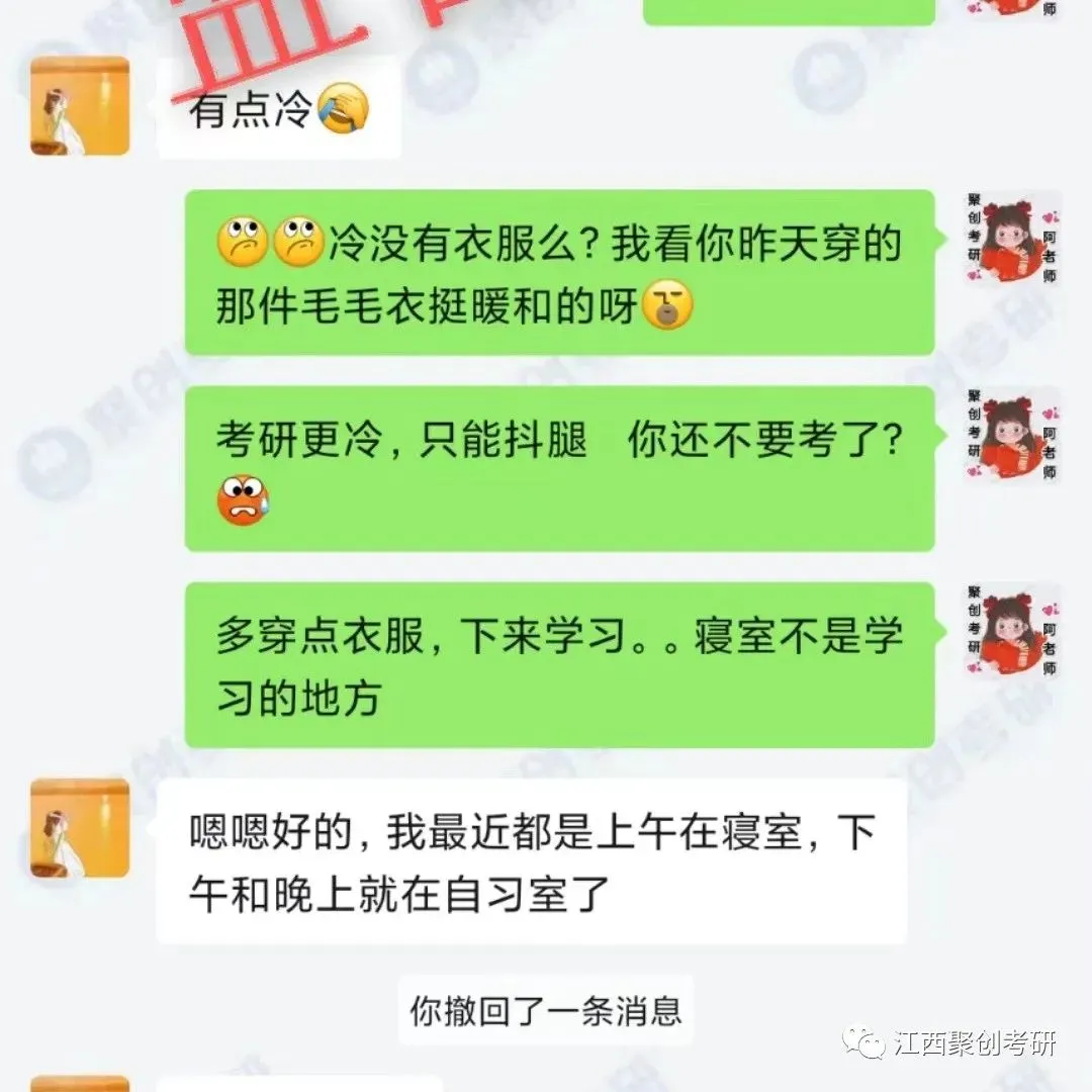学习不够自律?主动性太差?别担心,江西聚创考研二战集训营会给每位学员配备班主任,督促每日学习打卡,抽查学习进度。