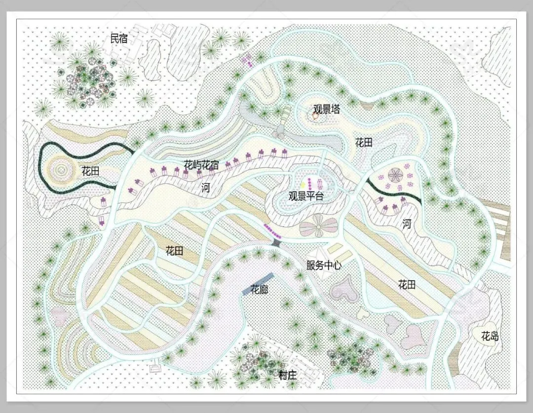 >乡村农业园花田花海农庄田园农旅果园 农场CAD方案设计平面图平面