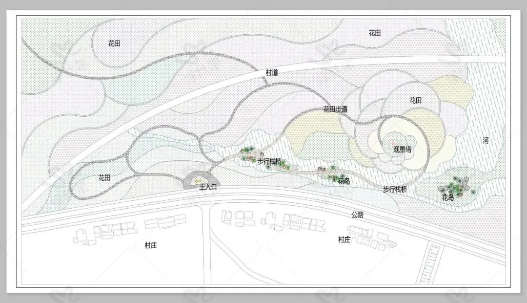 乡村农业园花田花海农庄田园农旅果园 农场CAD方案设计平面图平面