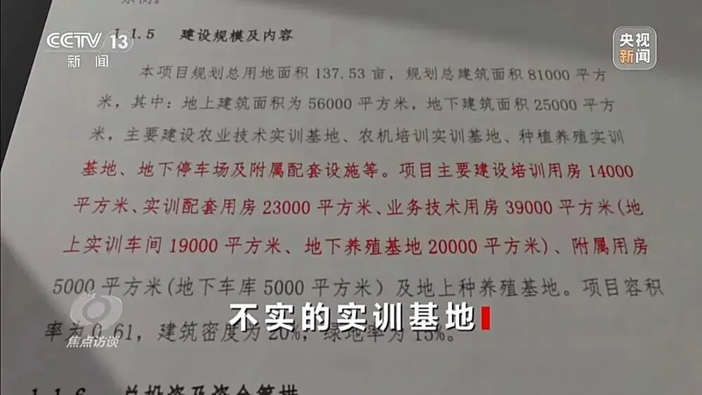 备案文件上白纸黑字:建设农业技术、农机培训、种植养殖三大实训基地及配套。