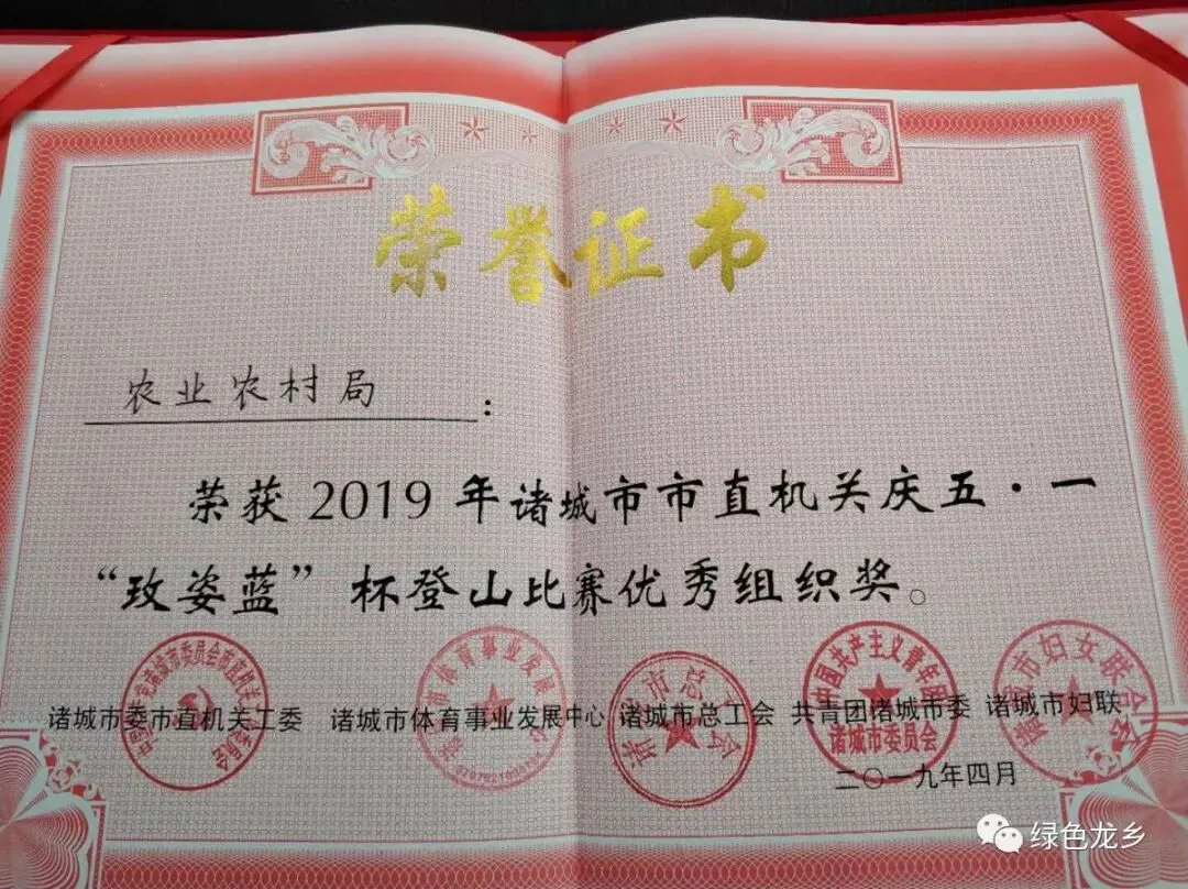 为庆祝中华人民共和国成立70周年,营造市直机关健康向上、和谐融洽的工作氛围,4月29日上午,中共诸城市委市直机关工委、市体育事业发展中心、市总工会、共青团诸城市委、市妇联联合主办的2019年诸城市市直机关“玫姿蓝”杯登山比赛在常山拉开“战幕”,市农业农村局13名干部职工踊跃报名参加比赛。