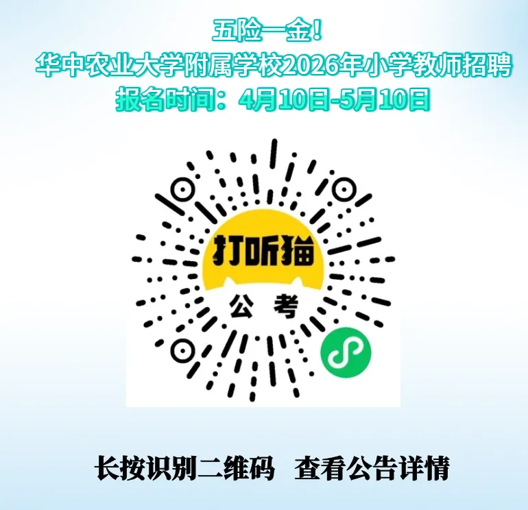 >【武汉教师招聘】五险一金!华中农业大学附属学校2026年小学教师招聘!