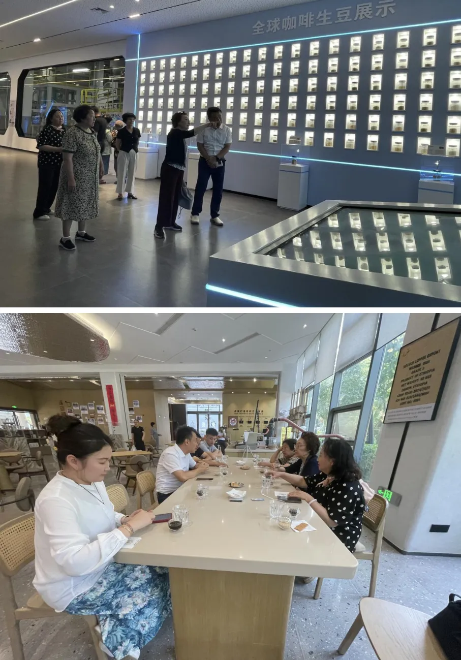 在正大兴隆咖啡文化园,调研组实地察看了咖啡种植示范园、咖啡产品类型,评鉴体检了咖啡系列产品。企业负责人介绍了咖啡文化、品牌故事以及咖啡旅游融合发展情况。双方围绕咖啡营养保健功能挖掘,咖啡饮品、食品及文创衍生品开发等方面开展了深入交流。