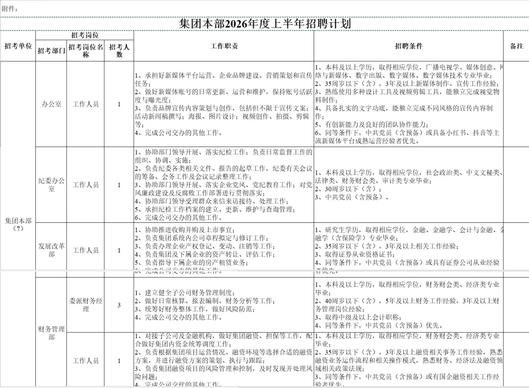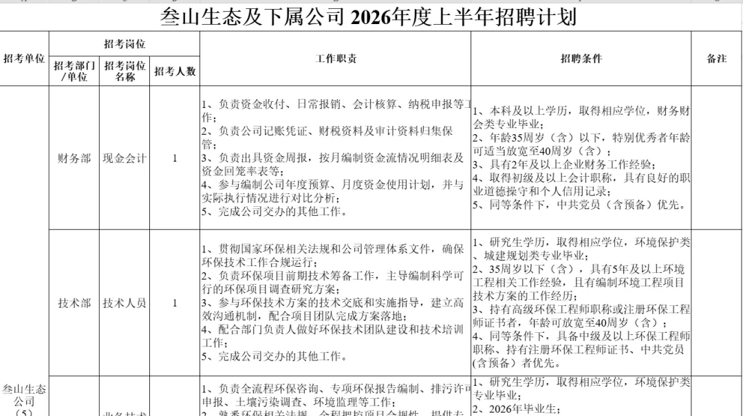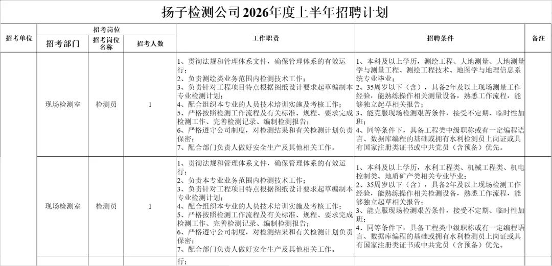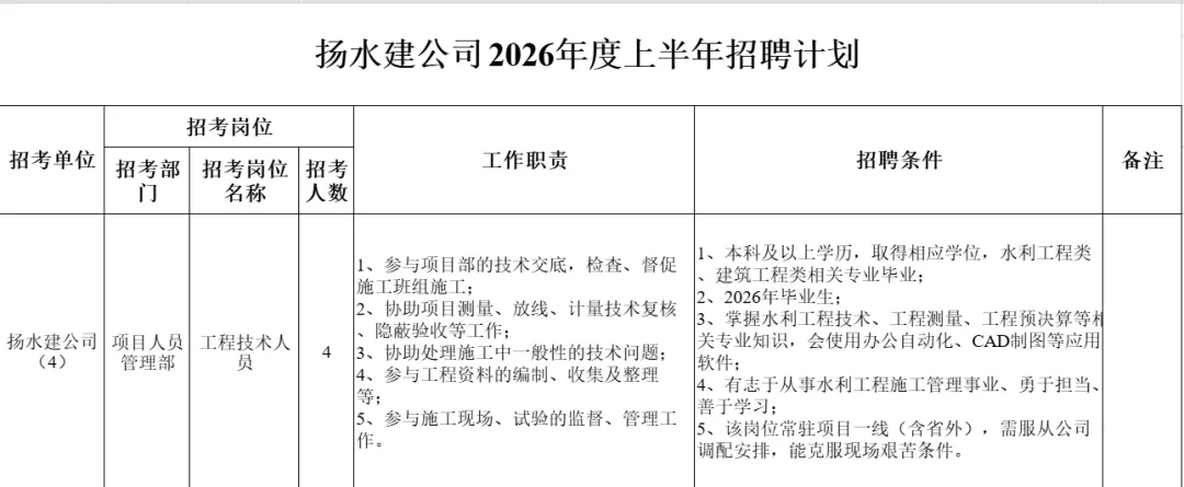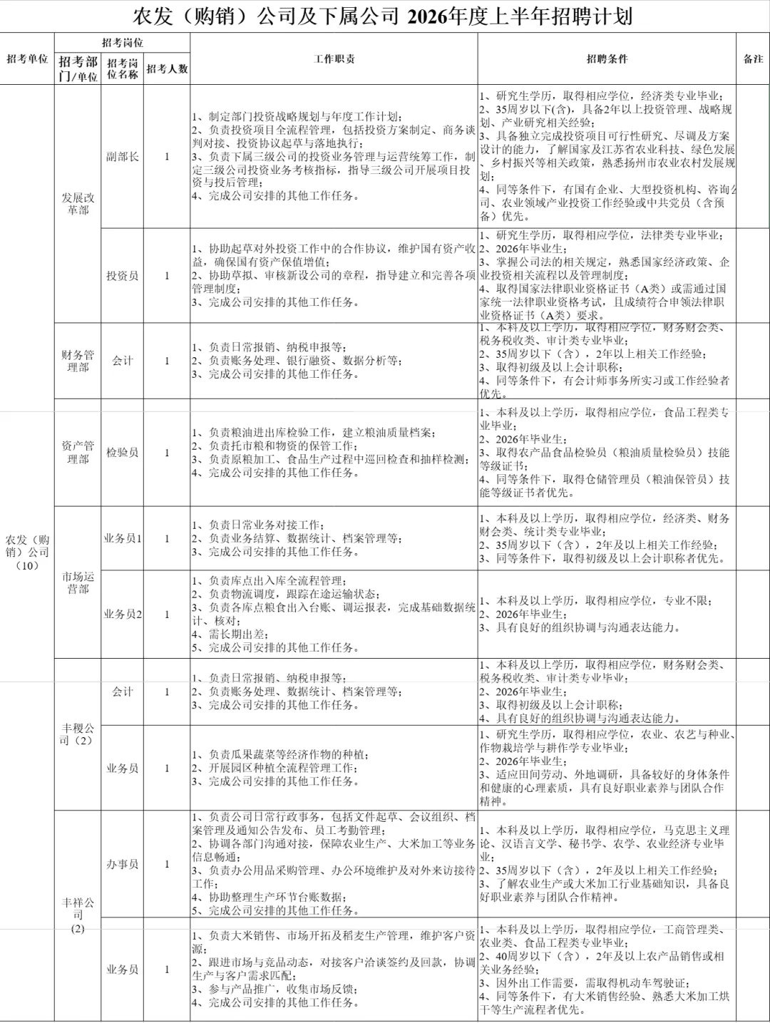 5、符合《2026年扬州现代农业生态环境投资发展集团公开招聘工作人员招聘计划表》(以下简称《招聘计划表》,详见附件)中各岗位所规定的具体资格条件;其中“招聘条件”中专业参考《江苏省2026年考试录用公务员专业参考目录》设置。