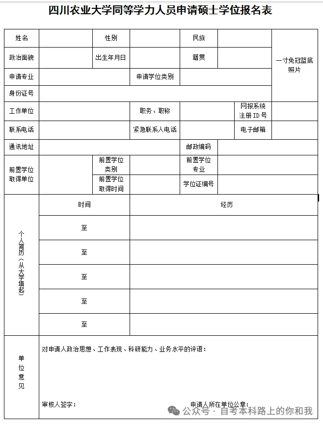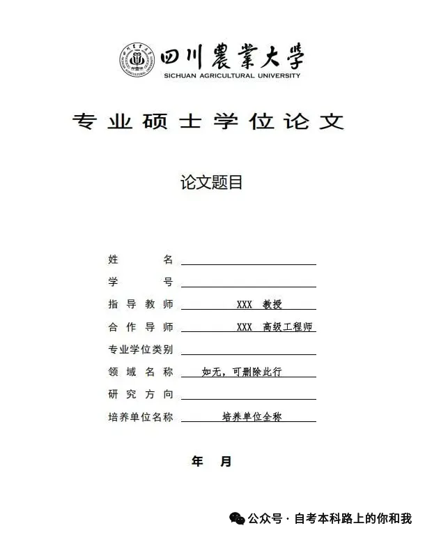 第一条 报读流程申请人完成网上报名及现场确认后,进入课程学习阶段,自通过资格审查后,2 年内须完成同等学力申硕的课程学习,通过考试并取得相应学分;4 年内(包含课程学习的 2 年)须通过申请学科要求的全部全国统一考试(每年可考一次)进入学位论文撰写、答辩与授位阶段。两个阶段的学习期限合计不超过5 年,逾期未办理相应手续、未修满学分、未通过全国统一考试或学位论文未能通过者,学校不再受理学位申请。第二条 前置学历申请人报名时提供的一切证明材料和填写的信息均真实有效,并已核实报考信息准确无误,如有不实,本人愿意承担取消录取、取消注册资格、退学、结业证、学位网信息错误等一切后果。申请人所提供的学位证书属于国家承认的“ 国民教育系列 ”范畴,其有效性可通过中国高等教育学生信息网进行查询,并可出具有效的学位认证报告。第三条 课程学习课程设置按学校各专业硕士研究生培养方案的规定设置, 申请人按照课程设置上课,须在 2 年内完成同等学力申硕的课程学习及完成老师布置的作业,凡修满规定学分的申请人,学校颁发“ 四川农业大学同等学力申请硕士学位课程结业证书 ”。 申请人自通过资格审查后超过4年仍未修满学分的,学校不再接受学位申请。第四条 全国统考同等学力全国统考在每年的5月份, 申请人根据自己报读的专业,于3月份在网上进行全国统考报名,报考科目为“学科综合”(部分学科)+“外国语”,总分均为100分,60分合格,报考费每科100元(根据当地学位办统一标准)。申请人自通过资格审查后超过4年仍未通过全国统考者,学校不再接受学位申请。第五条 论文与答辩申请人通过申请学科要求的全部全国统一考试后,须在1个月内缴清第二阶段费用并向教学学院(所)提出学位论文申请,1年内按相关规定完成硕士学位论文撰写、重复率检测和外审等,并提交论文答辩申请。论文答辩应在申请人提交论文后的半年内完成。论文撰写和质量要求、答辩流程和学术诚信按上级主管部门和学校相关规定执行。论文答辩未通过,但答辩委员会建议修改论文后再重新答辩者,可在半年后至一年内重新申请答辩一次,答辩仍未通过或逾期未申请者,本次申请无效。第六条 退学申请人因个人原因中止学习,不再申请硕士学位,须由本人向学校提交退学申请表,助学中心负责人签署意见后送交学校审批,批准后办理相关手续。第七条 各自职责助学中心需协助申请人报名、学习、参加考试、论文答辩等工作。 申请人需准确、及时的把相关信息告知学校及校外助学中心,并按照教学计划按时上课、参加考试。申请人报名入学后应确保通讯顺畅,如变更手机号码应及时通知有关管理人员(班主任),如因申请人自身原因导致无法及时告知申请人上课、报考、考试等造成损失,学校将不负任何责任,建议申请人在读期间不要变更手机号码。申请人在学校及助学中心期间应确保自身人身安全,如因申请人过失造成人身安全事故,学校不承担任何责任。第八条 通过率学校及校外助学中心不承诺任何形式的统考、毕业论文撰写及答辩通过率。