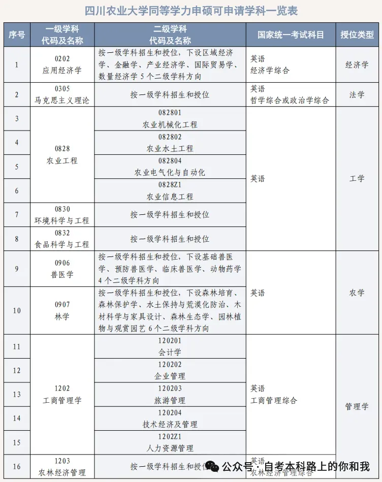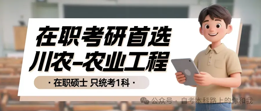 四川农业大学农业工程同等学力申硕,免试入学、仅统考英语一科,线上学习适配在职人群,授予工学硕士学位(学信网可查),助力职称晋升与职业发展。四大方向精准匹配现代农业需求,适配农机、水利、电力、信息等领域从业者。