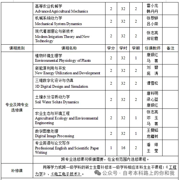 备注:同等学力或跨一级学科的硕士生需补修本一级学科相应本科生主干课程:《工程力学》、《电工电子技术》。