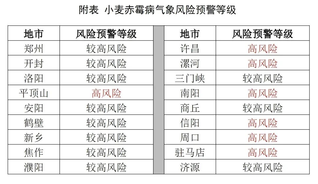 河南省农业农村厅 河南省气象局联合发布小麦赤霉病气象风险预警