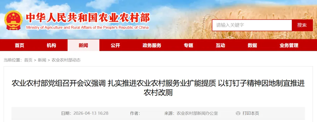 4月13日,农业农村部党组书记、部长韩俊主持召开部党组会议,专题传达学习习近平总书记重要指示和全国服务业大会精神,研究部署贯彻落实举措,明确提出要发展农业低空经济,为农业农村服务业扩能提质注入新动能。