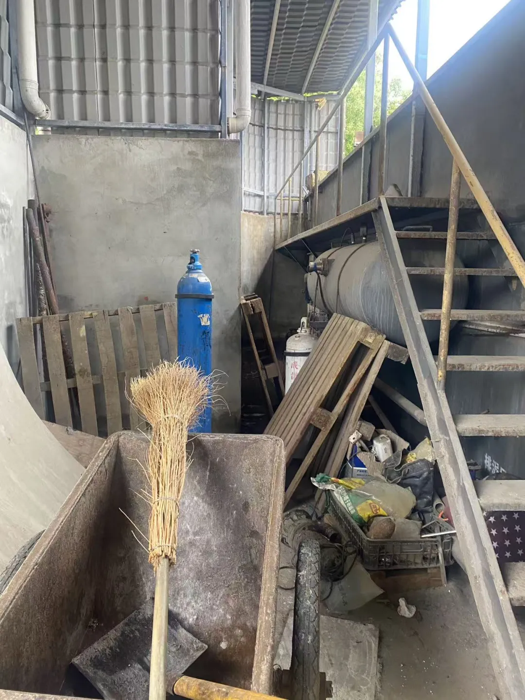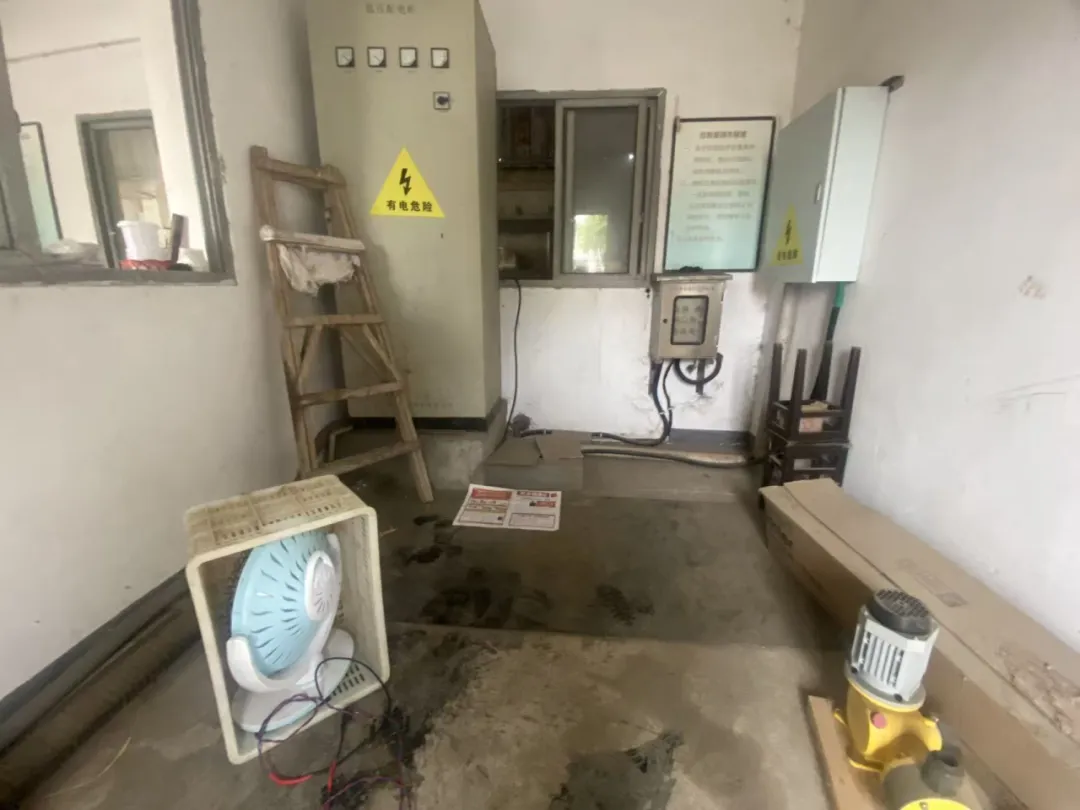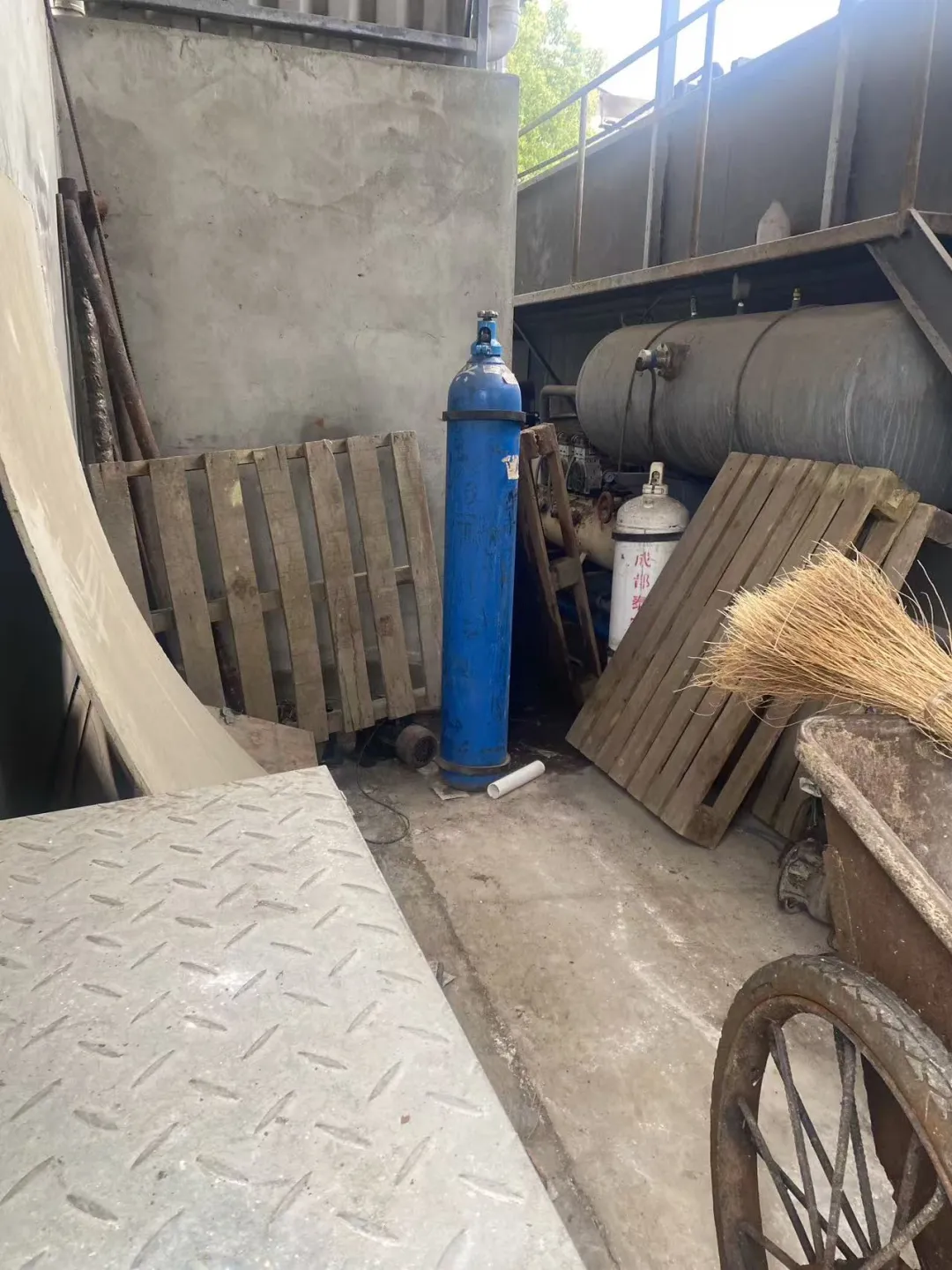 2、污水处理站外设备间内氧气瓶乙炔瓶存放无安全间距,无防倾倒措施,存放位置不合理;