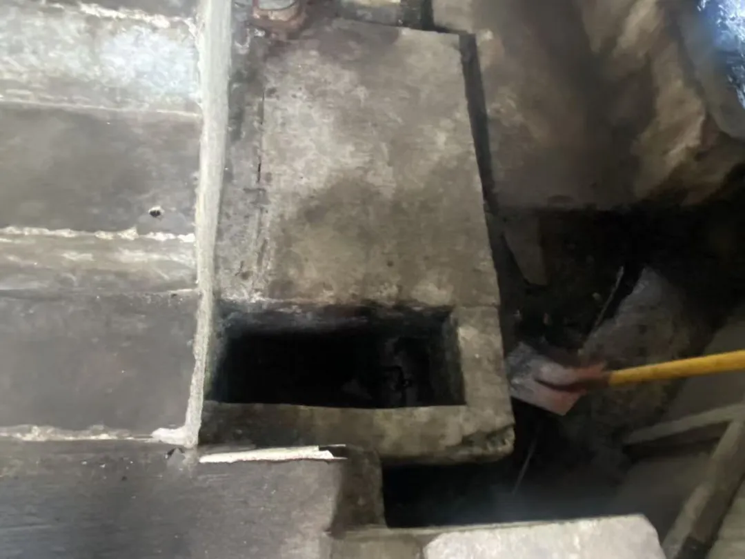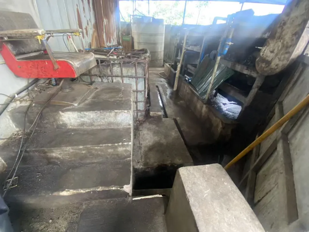 3、压缩污泥区域压泥机旁过道处污水沟无盖板;