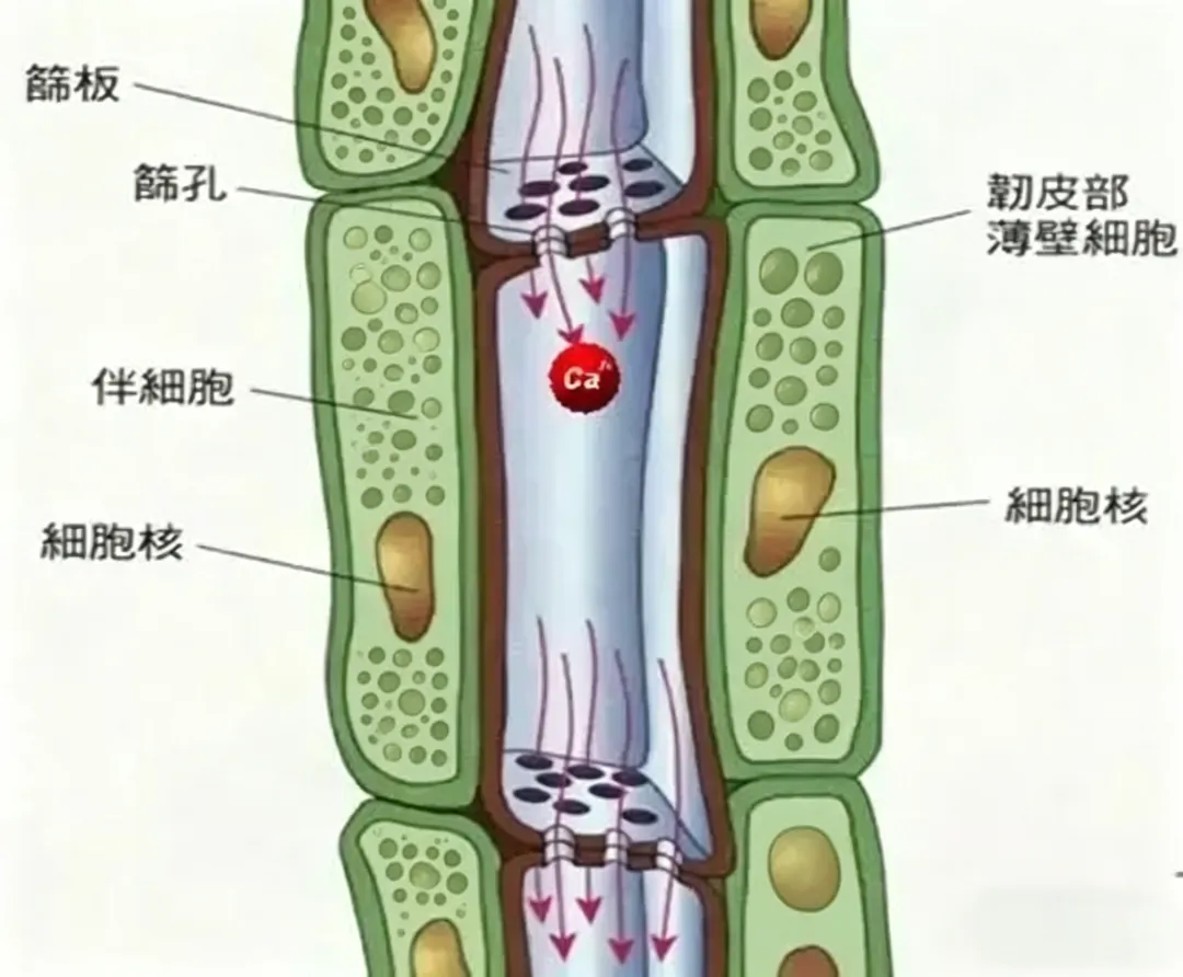 而芸苔素具有细胞分裂素、赤霉素以及生长素等综合作用,可促进果树根系细胞分裂生长,增加毛细根数量,从而提高对土壤中钙元素的吸收利用。