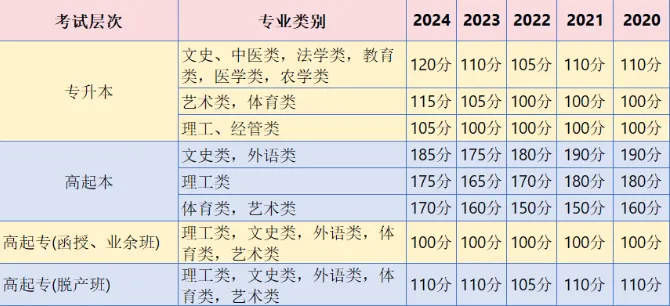 往年最低录取分数线参考: