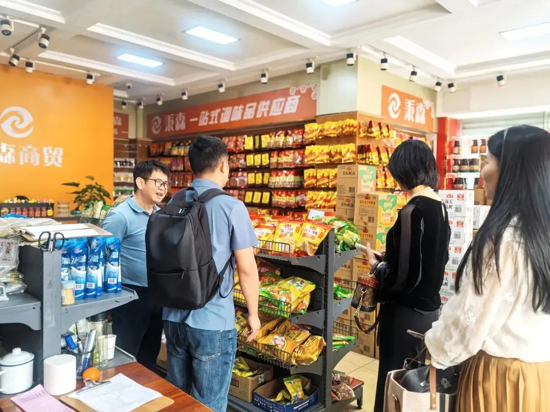 在海天味业云南省昆明市餐批渠道经理郭雄的陪同下,学院教师团队首先参观了海天味业重点合作伙伴——昆明秉森商贸有限公司。通过实地走访,团队深入了解了企业的运营模式、业务布局及人才需求现状。