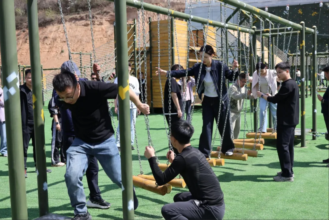 登山比赛率先拉开帷幕。全体员工自景区门口沿指定步道出发,大家一边饱览春日胜景,在青山绿水间舒展身心;一边你追我赶、奋勇争先,充分感受春天的生机与活力。“重走长征路”主题团建活动接续开展,大家分成四组,依次挑战“飞夺泸定桥”“四渡赤水”等红色主题拓展关卡。
