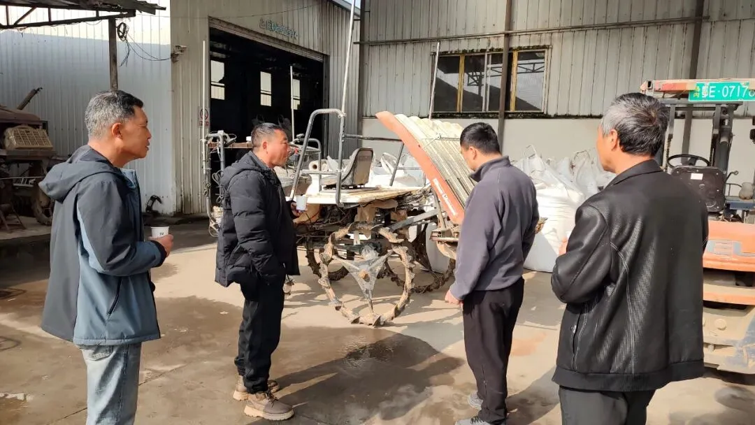 检验现场,执法人员与公司技术骨干严格依照相关规范,对公司及合作农户的拖拉机、插秧机、联合收割机、植保无人机等50余台(套)农机具进行全面安全检验,重点排查制动、转向、灯光、安全防护、传动等关键部件,逐台核对号牌与行驶证信息,建立“一机一档”安全台账。对零部件老化、防护缺失、线路破损等隐患现场指导整改,不合格机具一律严禁投入作业。同时,免费为农机粘贴安全反光标识、发放安全操作手册,实现“让服务多跑路、让机手少跑腿”,以严格检验确保农机状态完好,从源头消除机械带病作业风险。