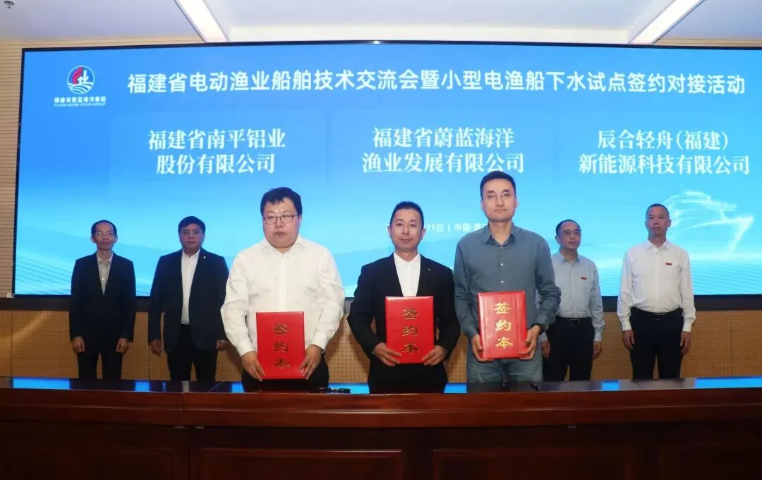 在参会领导嘉宾共同见证下,福建省蔚蓝海洋渔业发展有限公司分别与我校轮机工程学院、罗普特科技集团股份有限公司及多家造船企业签署合作协议,为电动渔业船舶下水试点工作奠定了坚实基础。