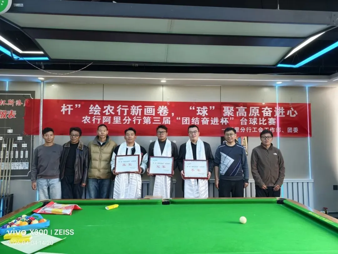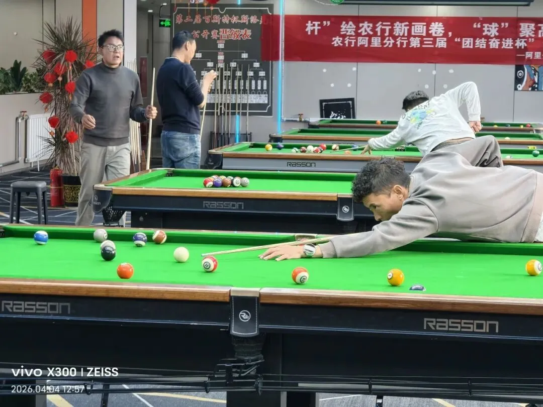 阿里分行工会联合团委以“‘杆’绘农行新画卷,‘球’聚高原奋进心”为主题,举办第三届“团结奋进杯”台球竞赛活动,本次比赛,来自分行机关及噶尔县支行的台球爱好者齐聚赛场,以球会友、切磋技艺。