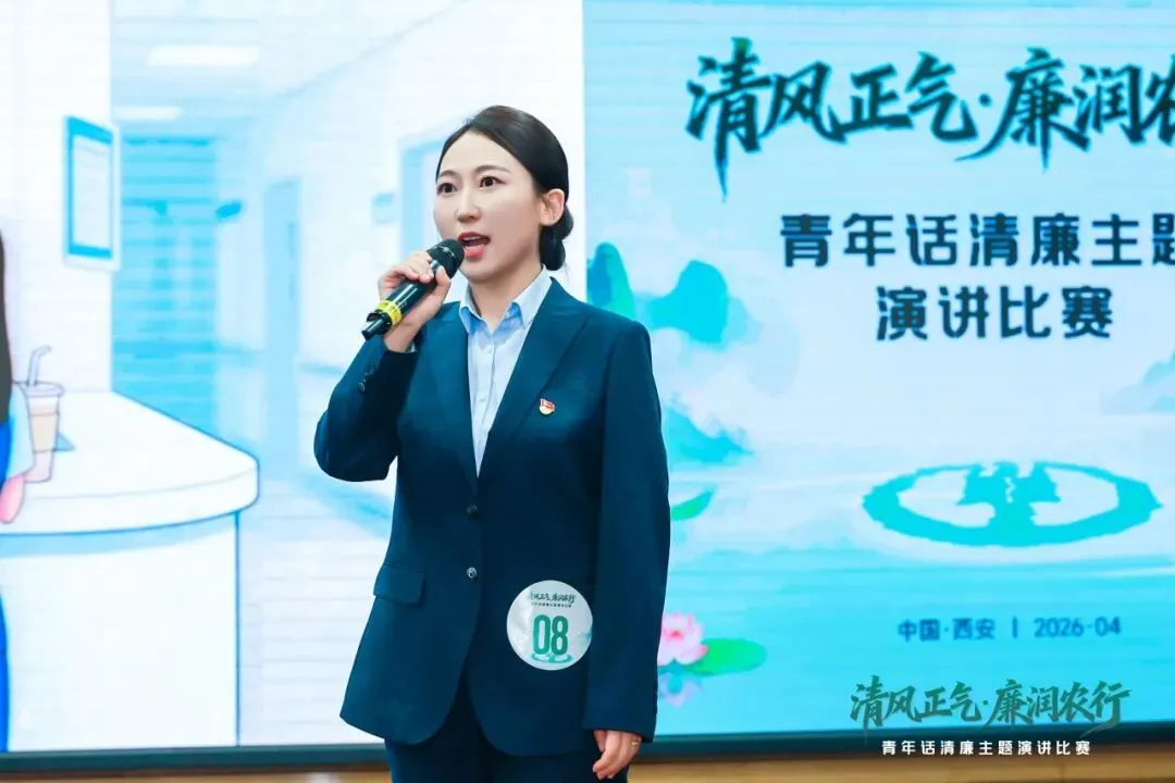 2026年4月14日下午,农行陕西省分行举办“清风正气 廉润农行”青年话清廉主题演讲比赛。陕西分行党委委员、副行长郭一芳出席比赛并致辞,来自全省农行的24名青年员工以青春之声颂廉洁初心,为全场带来了一场清廉文化盛宴。