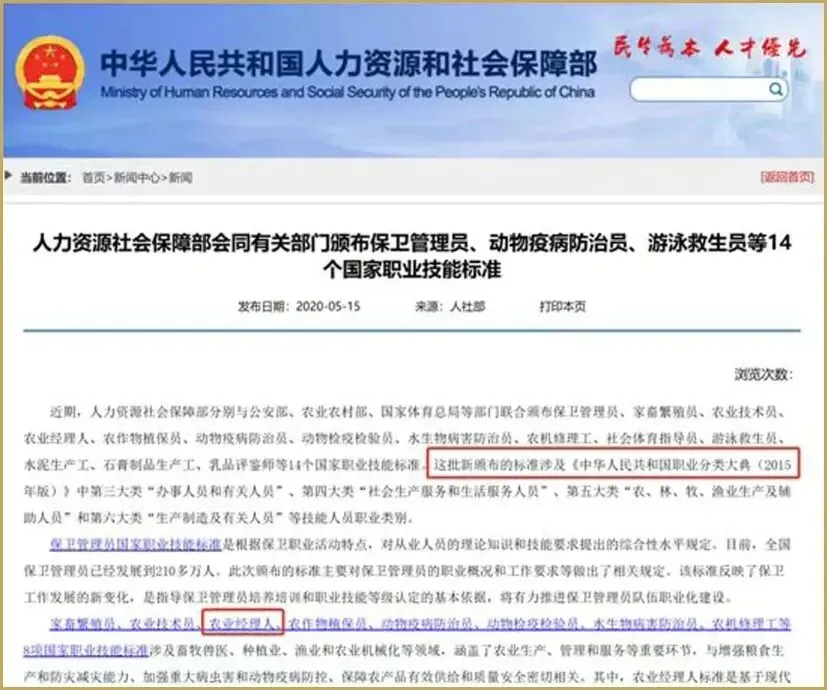 2020年由人社部、农业农村部联合颁布的国家新职业,2022年正式纳入《中华人民共和国职业分类大典》。