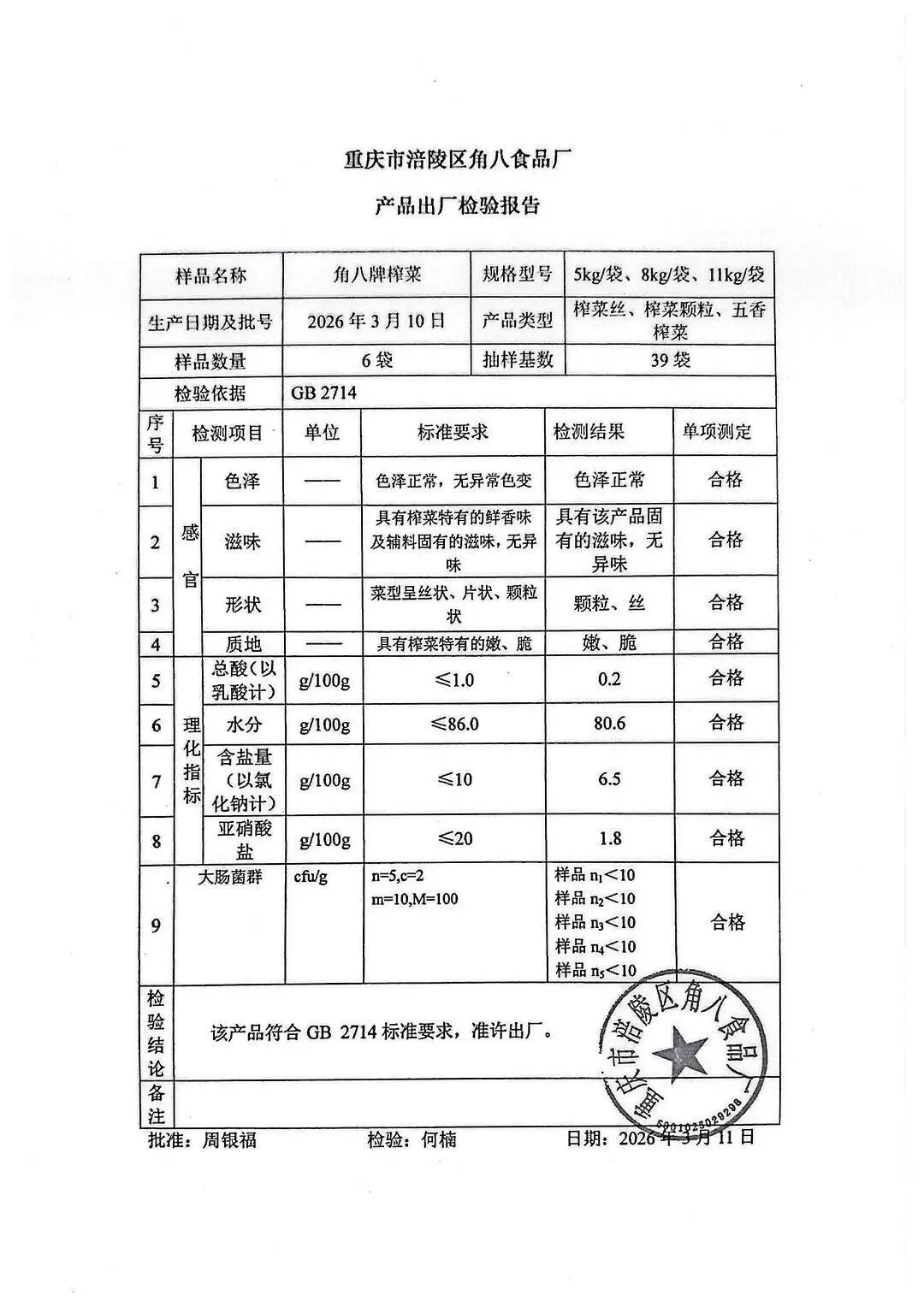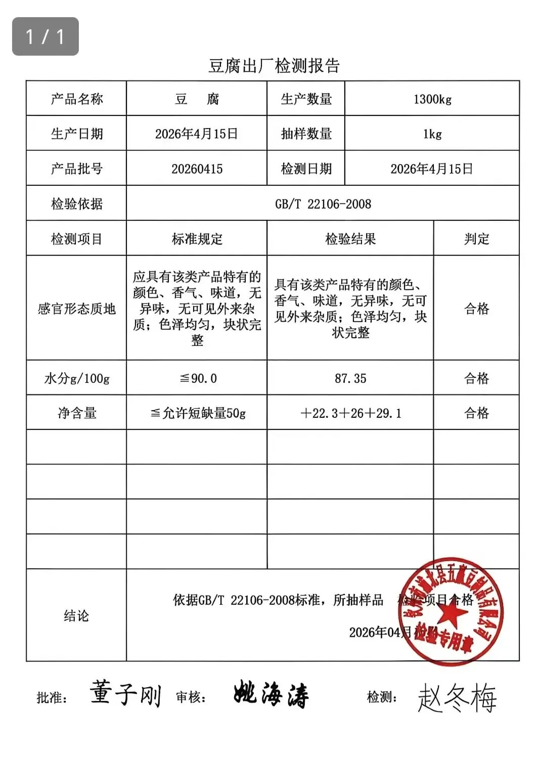 蛋类、酱腌菜、肉类、蔬菜、水豆腐、鲜湿淀粉条检测报告